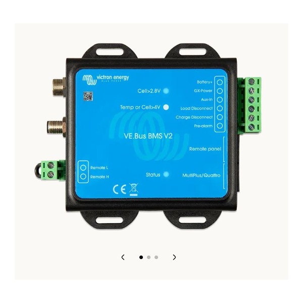 Le BMS VE.Bus et le BMS VE.Bus V2 sont des systèmes de gestion des batteries (BMS) conçus pour s’interfacer avec et protéger une ou plusieurs batteries Victron Lithium Battery Smart 12,8 V et 25,6 V (LiFePO4 ou LFP) dans les systèmes dotés de convertisseurs ou de convertisseurs/chargeurs Victron avec communication VE.Bus.