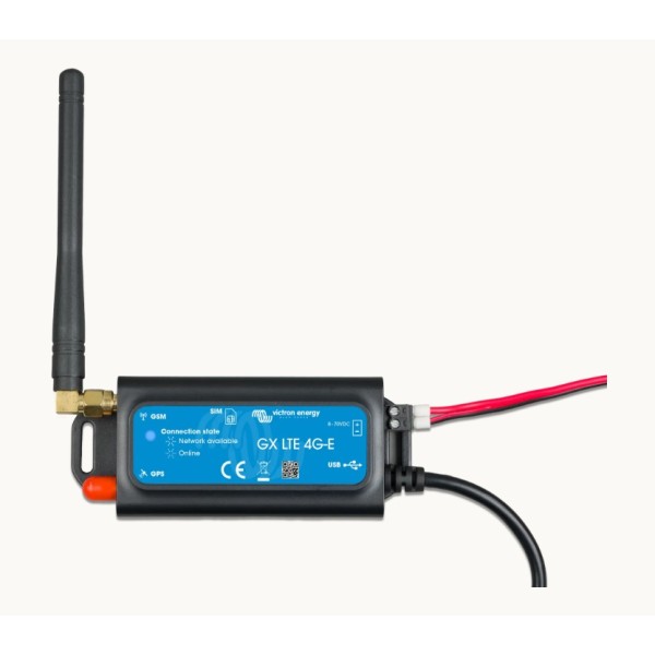 Le GX LTE est équipé d’un récepteur GPS intégré. Lorsque l’antenne GPS en option est installée, le système peut être suivi et géolocalisé sur le portail VRM.